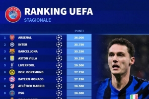 kaiyun正规平台-本赛季欧战积分排名:阿森纳居首,国米、巴萨、维拉、利物浦前五